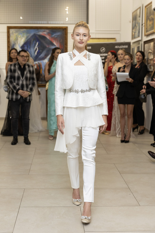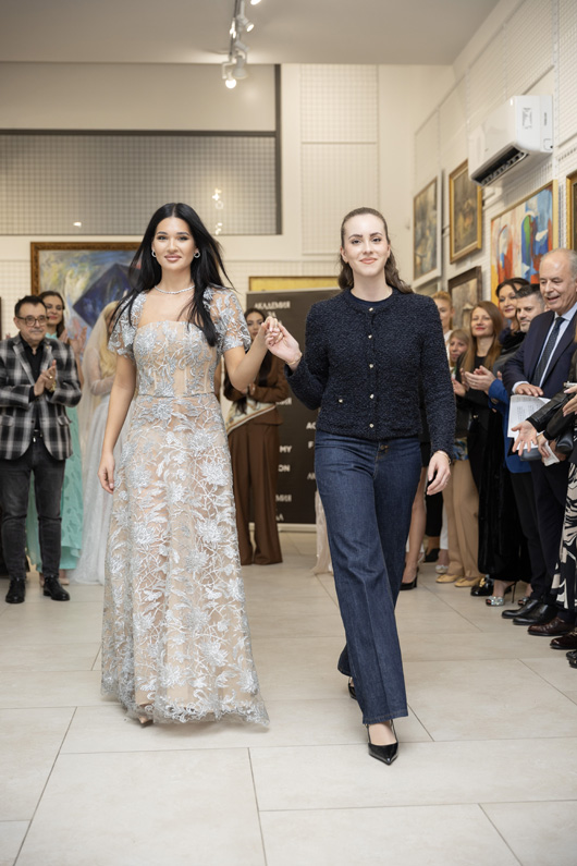 Модното ревю започна с Ивет Бианки – носител на „Златна игла 2024“ в категория „Най-добър млад дизайнер“, която представи рокля, част от колекцията Une nuit à Cannes („Една нощ в Кан“). Аутфитът е вдъхновен от духа на стария Холивуд – от онзи неподправен блясък и изтънчена женственост, които никога не излизат от мода.