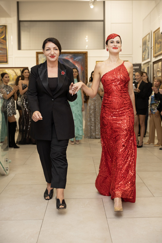 Поля Кинова – дизайнер на модна къща Paloma Fashion и двукратен носител на „Златна игла“, представи своята ода на елегантността – роклята Red Elegance. Аутфитът е вдъхновен от легендата – Джорджо Армани.